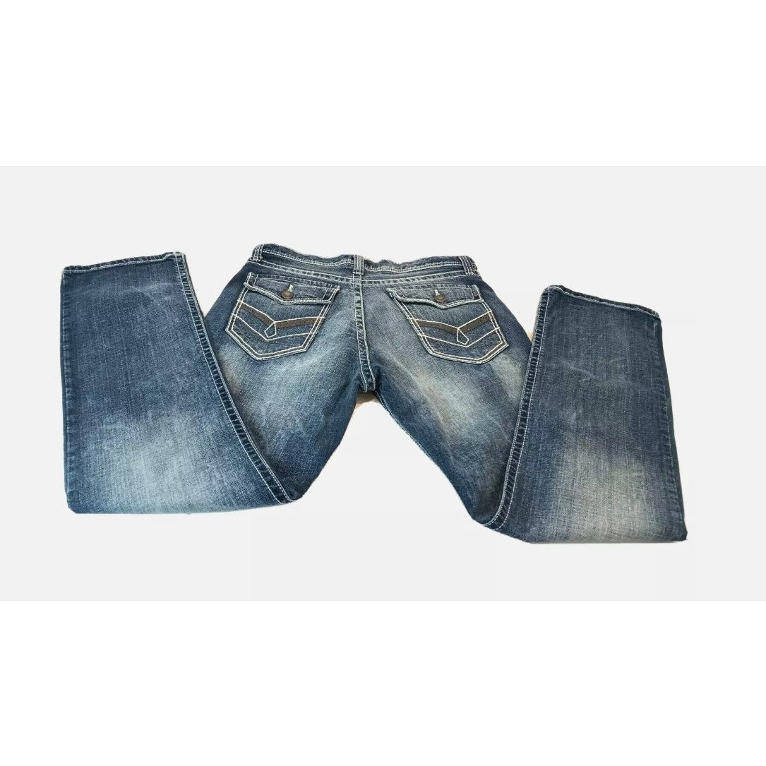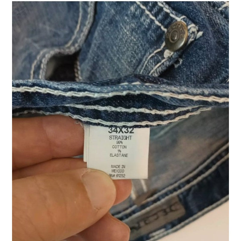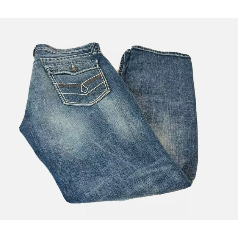 Decree Flex Denim Straight Medium Wash Jeans Design Pockets Men's 35 x 32